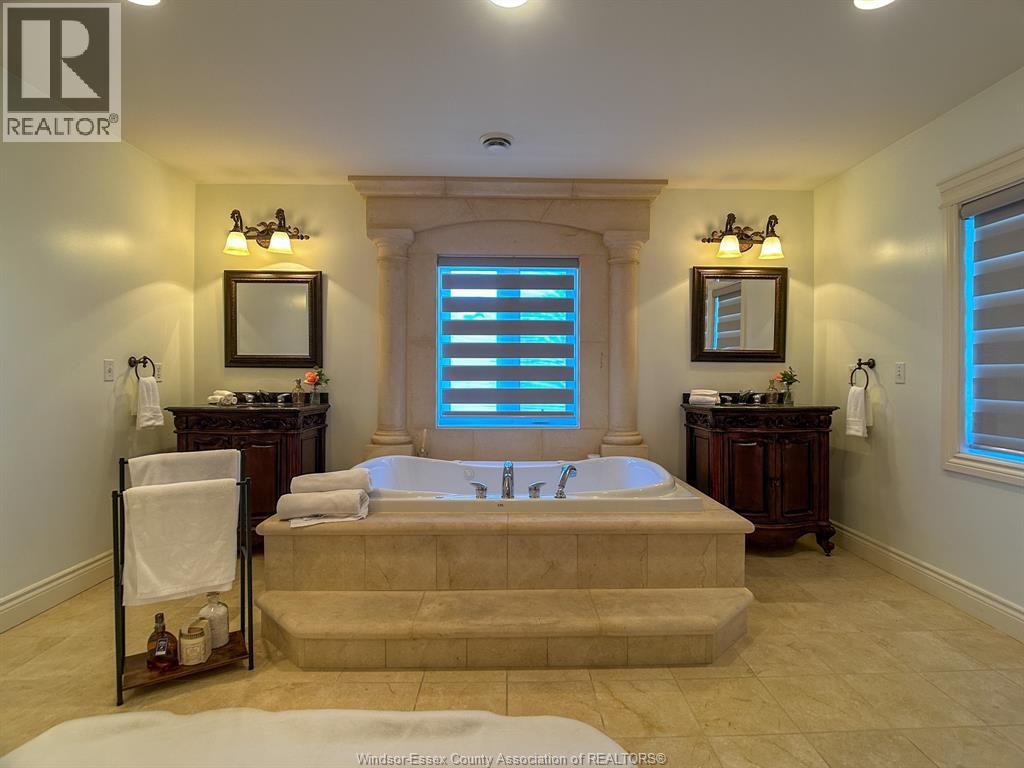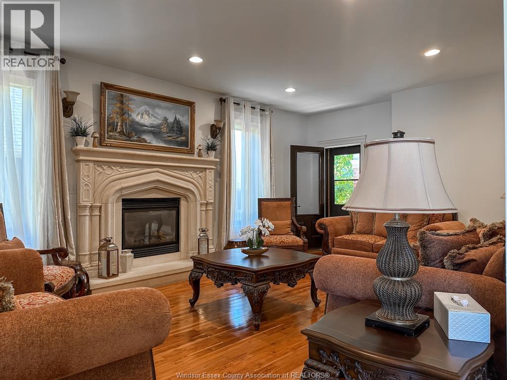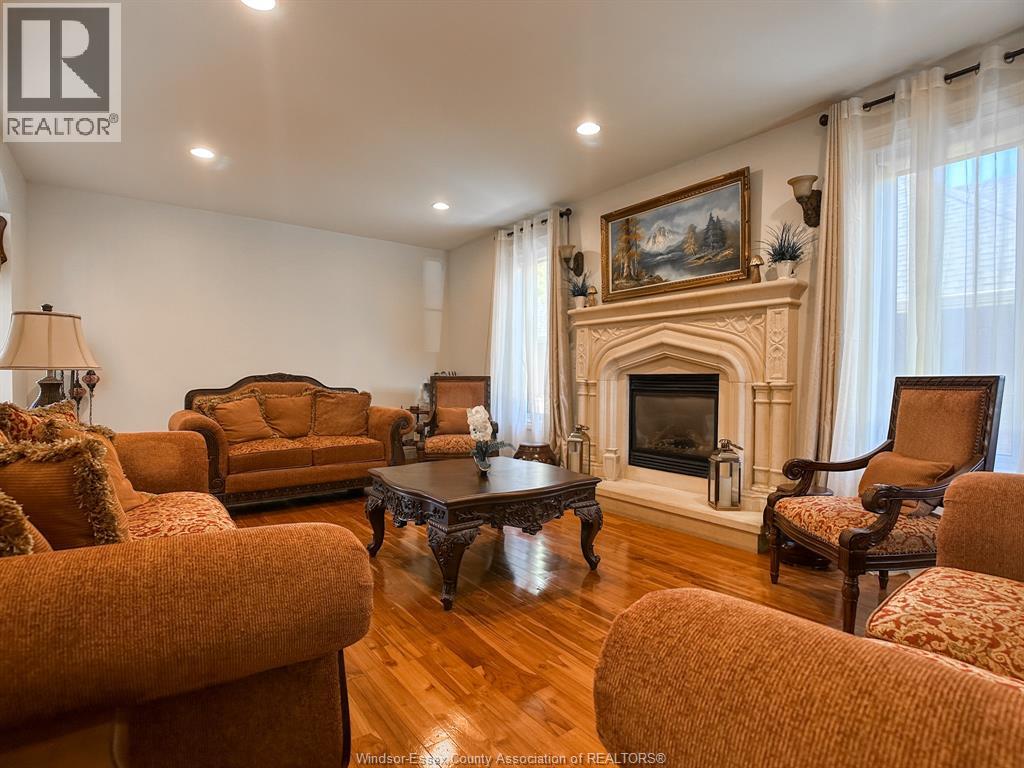 Experience luxury living in this stunning custom built two storey stone and brick home in a desirable Lakeshore neighbourhood. Featuring four spacious bedrooms and four and a half baths, this elegant residence offers an open concept main floor with a gourmet kitchen, granite island, family room with fireplace, formal dining area, private office, and mudroom. The upper level boasts a serene primary suite with walk-in closet, spa like ensuite, and adjoining sitting room, plus large additional bedrooms including one with its own ensuite and balcony. The finished basement offers a family room with fireplace, games area, and full bath. Outside, enjoy a private backyard oasis with a heated saltwater pool, stone patio, and landscaped grounds. Complete with a three car tandem garage, new hardwood floors, fresh paint, and new air conditioning, this home blends elegance, comfort, and modern living. (id:4555)